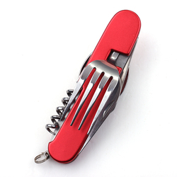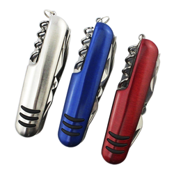 Cuchillo multifunción de acero inoxidable de venta directa de fábrica, cuchillo suizo con mango de plástico de Color rojo, cuchillo de bolsillo